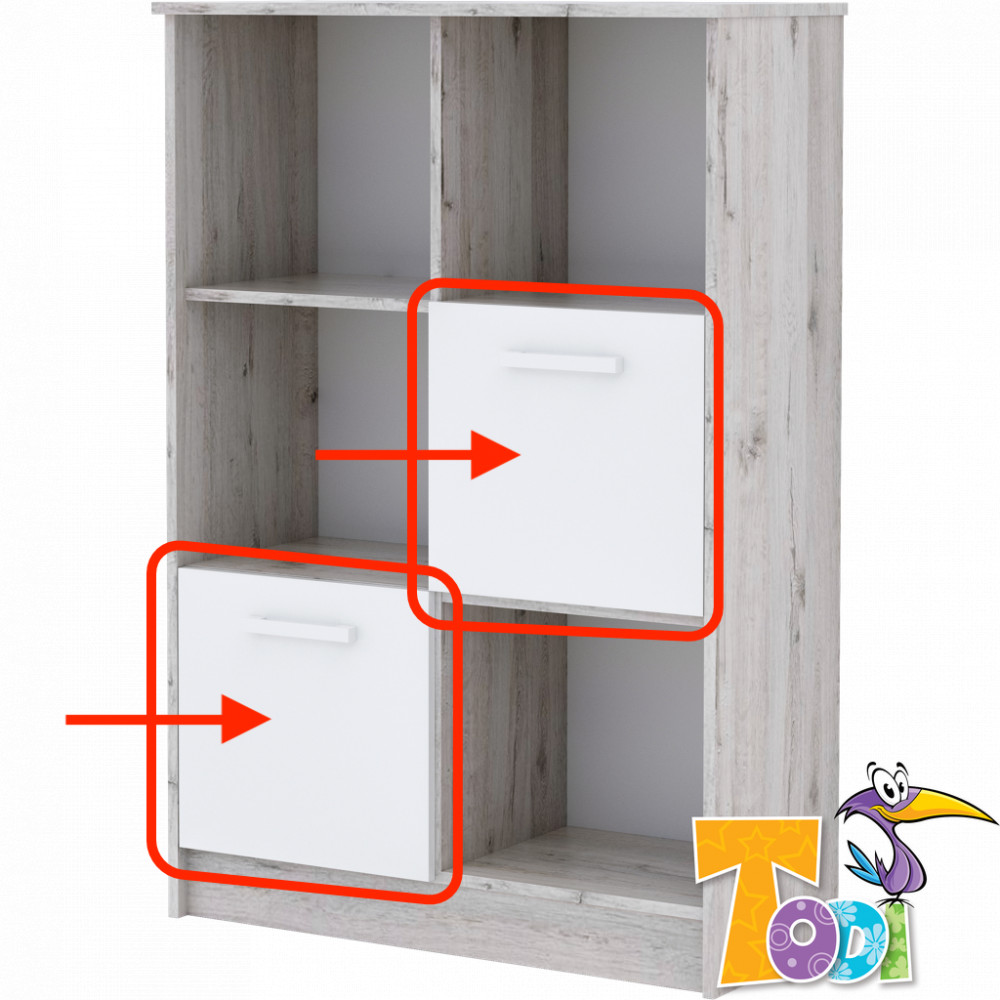 A Todi Bee bútorcsalád keskeny nyitott polcos szerkényéhez rendelhető ajtó 18 mm vastag préselt, laminált faforgácslapból készül, melynek színe bordázott fehér.
